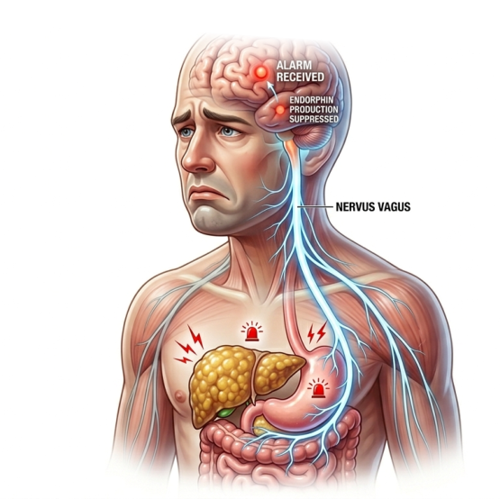 v břiše zánět a viscerální tuk, posílá mozku,