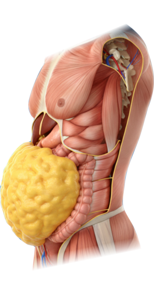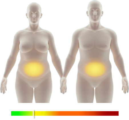 viscerální tuk v oblasti břicha, což je jeden